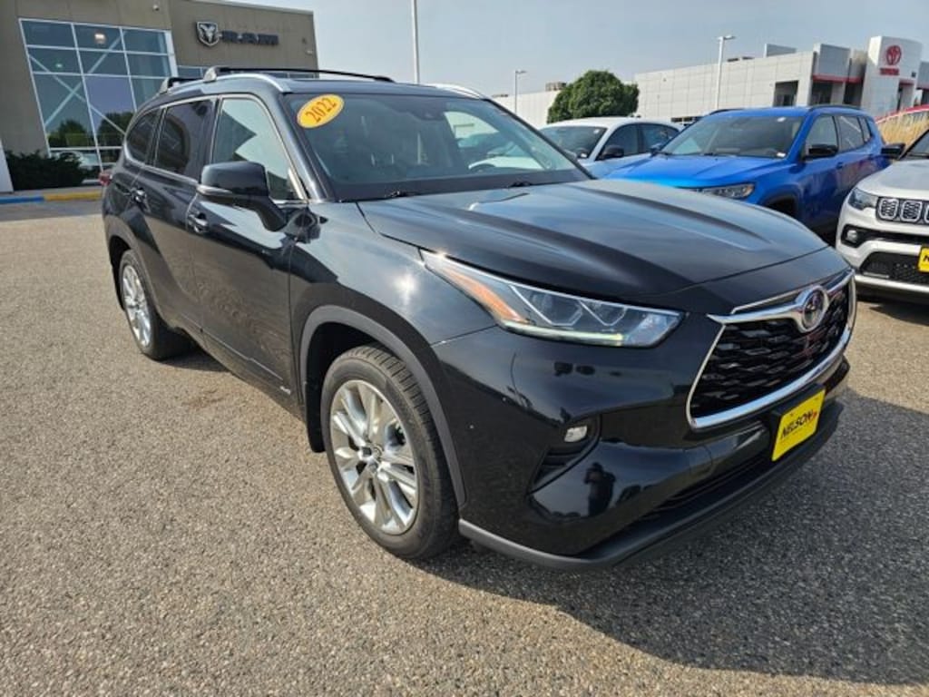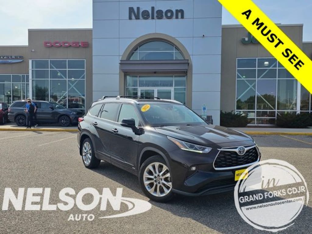 ALL USED VEHICLES priced aggressively to save you money and time. Get the service you DESERVE only at NELSON AUTO of GRAND FORKS. 2022 Toyota Highlander Hybrid AWD, This is a very nice One Owner trade, This vehicle has a Clean History Report!, Great Local Trade-in, Navigation, Leather, Back up Camera, Equipped with Third Row Seating, Enjoy the fresh air with the factory installed Moon Roof, Heated Seats, 20" Chrome Wheels, 3rd row seats: split-bench, Apple CarPlay/Android Auto, Auto High-beam Headlights, Automatic temperature control, Front fog lights, Fully automatic headlights, Heated door mirrors, Heated steering wheel, Memory seat, Navigation system: Dynamic Navigation (3-year trial), Power Liftgate, Rear air conditioning, Ventilated front seats.